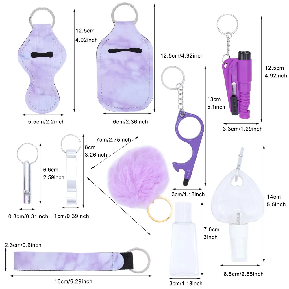 10pcs/Set Self Defense For Women Safety Keychain,Window Breaker Spray bottle Lipstick holder Keychain Accessories For Women