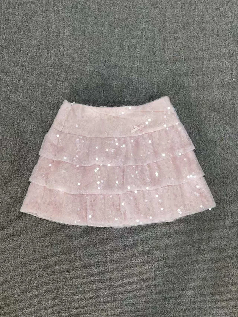 Sequin Skirt Women Pink Skirts for Sweet and Hot Girls Mesh Cake Skirt Summer New Chic Sexy Slim Fit Short Skirt for Women