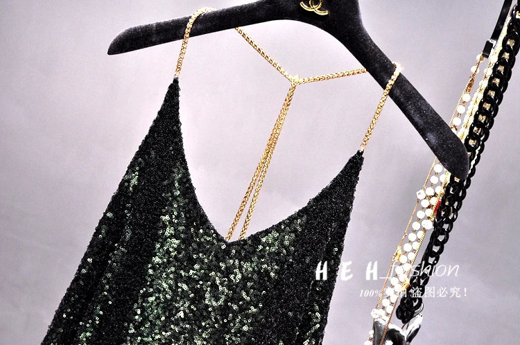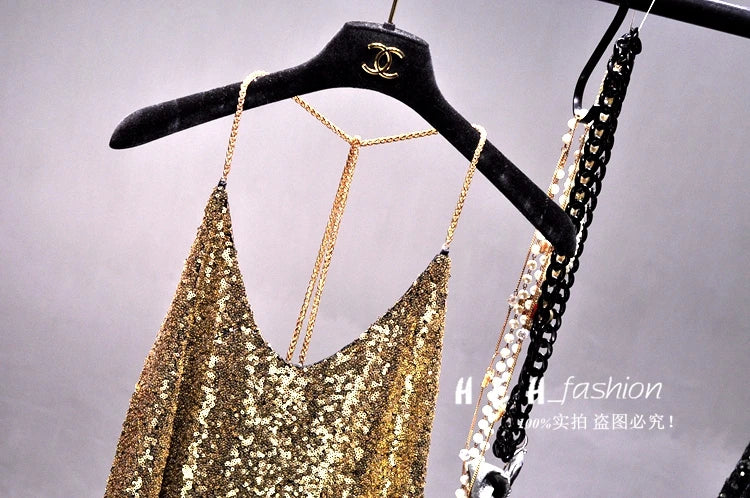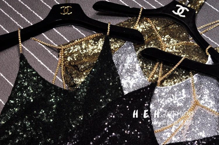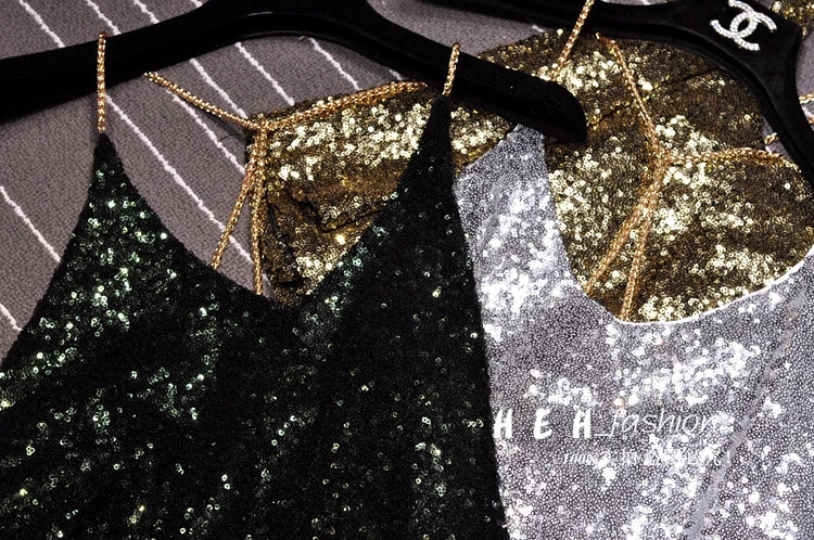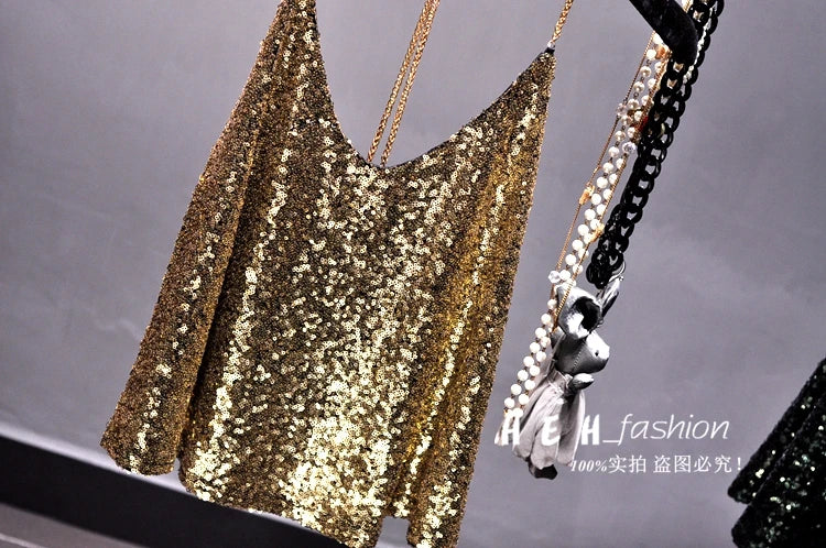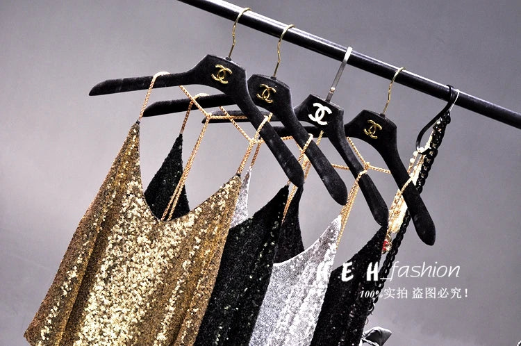 Sequins Condole Belt Vest, Women's Fashion Wear Tops 2023 Suumer Sexy Low-cut Loose T-shirts tank top tops