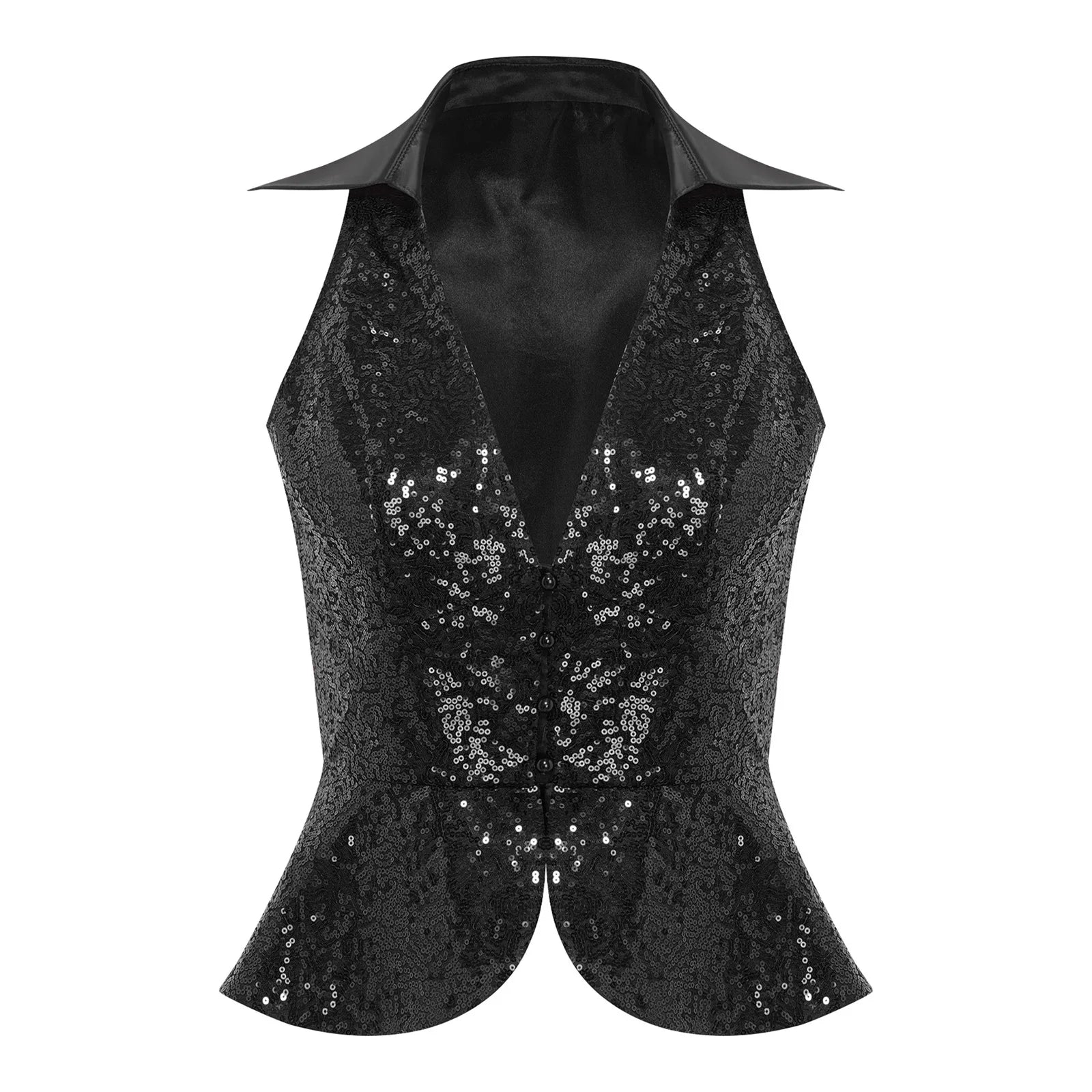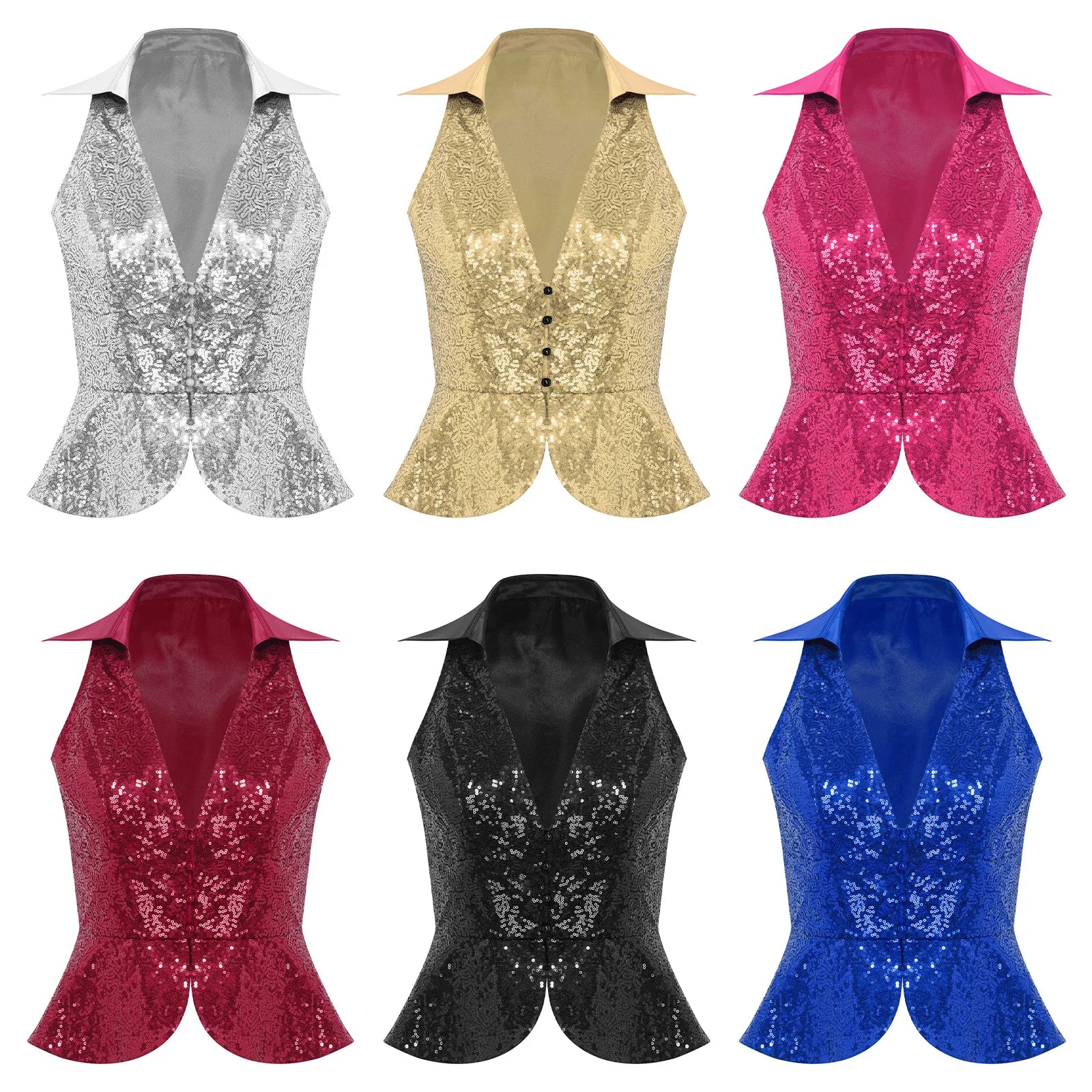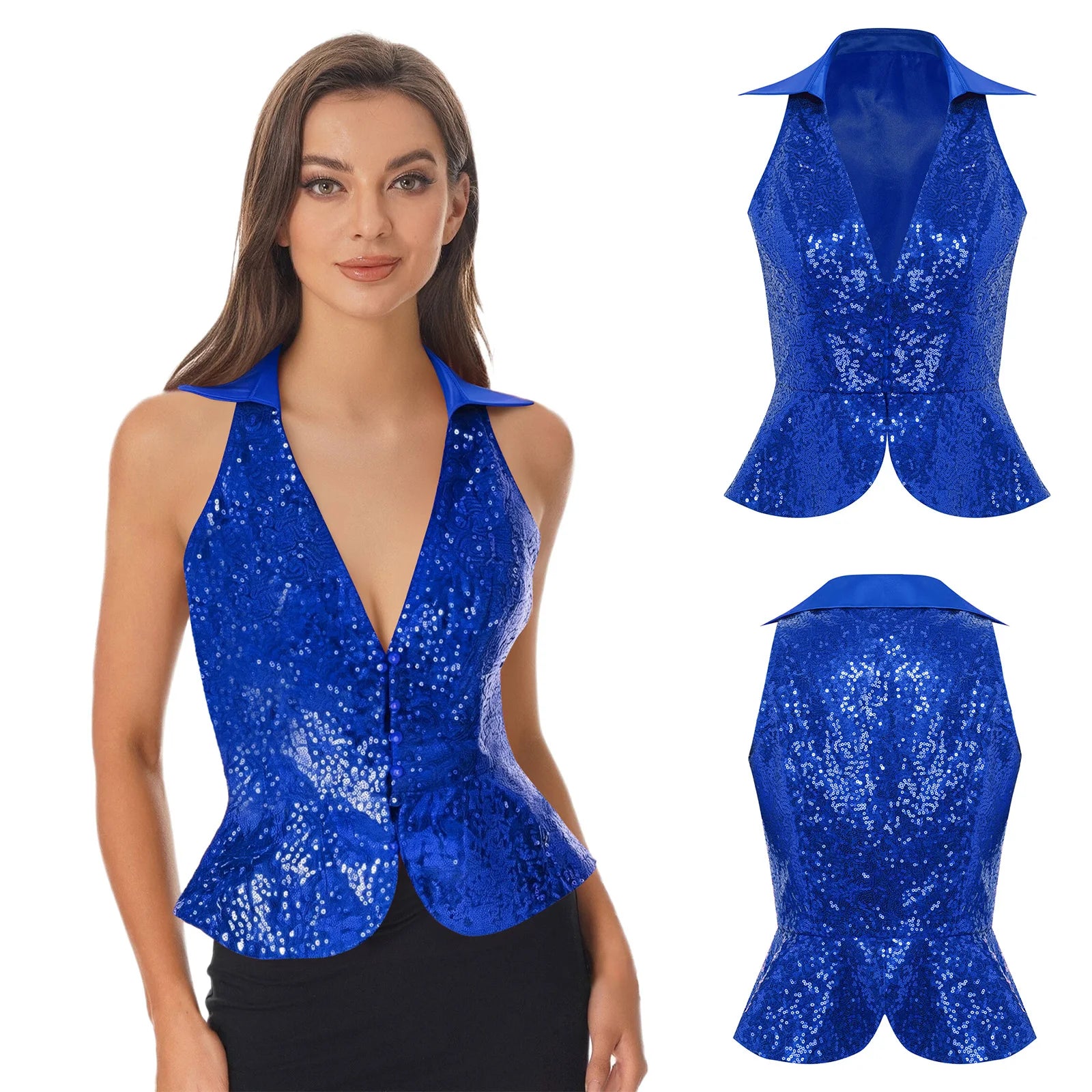 Sequins Vest Womens Fshion Sleeveless Vests Nightclub Bling Waistcoats Dressy Tops Rave Music Festival Party Sparkly Cosutme