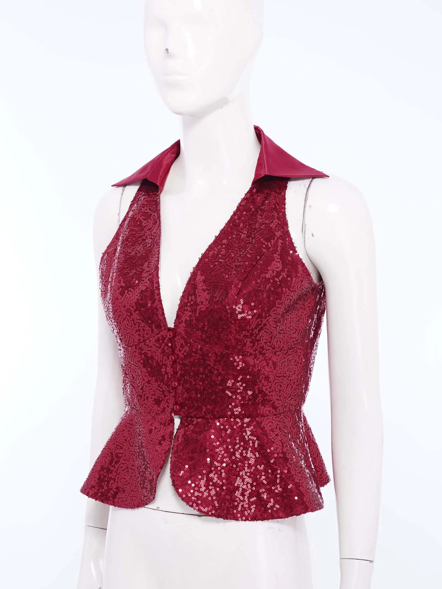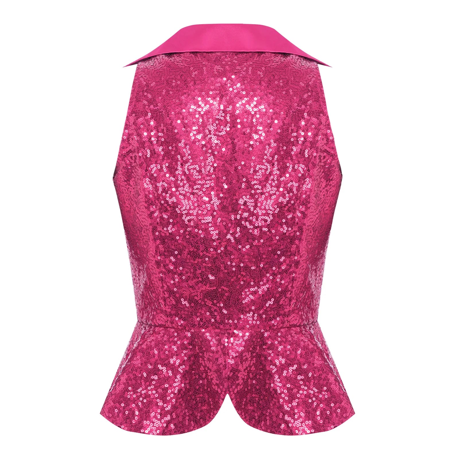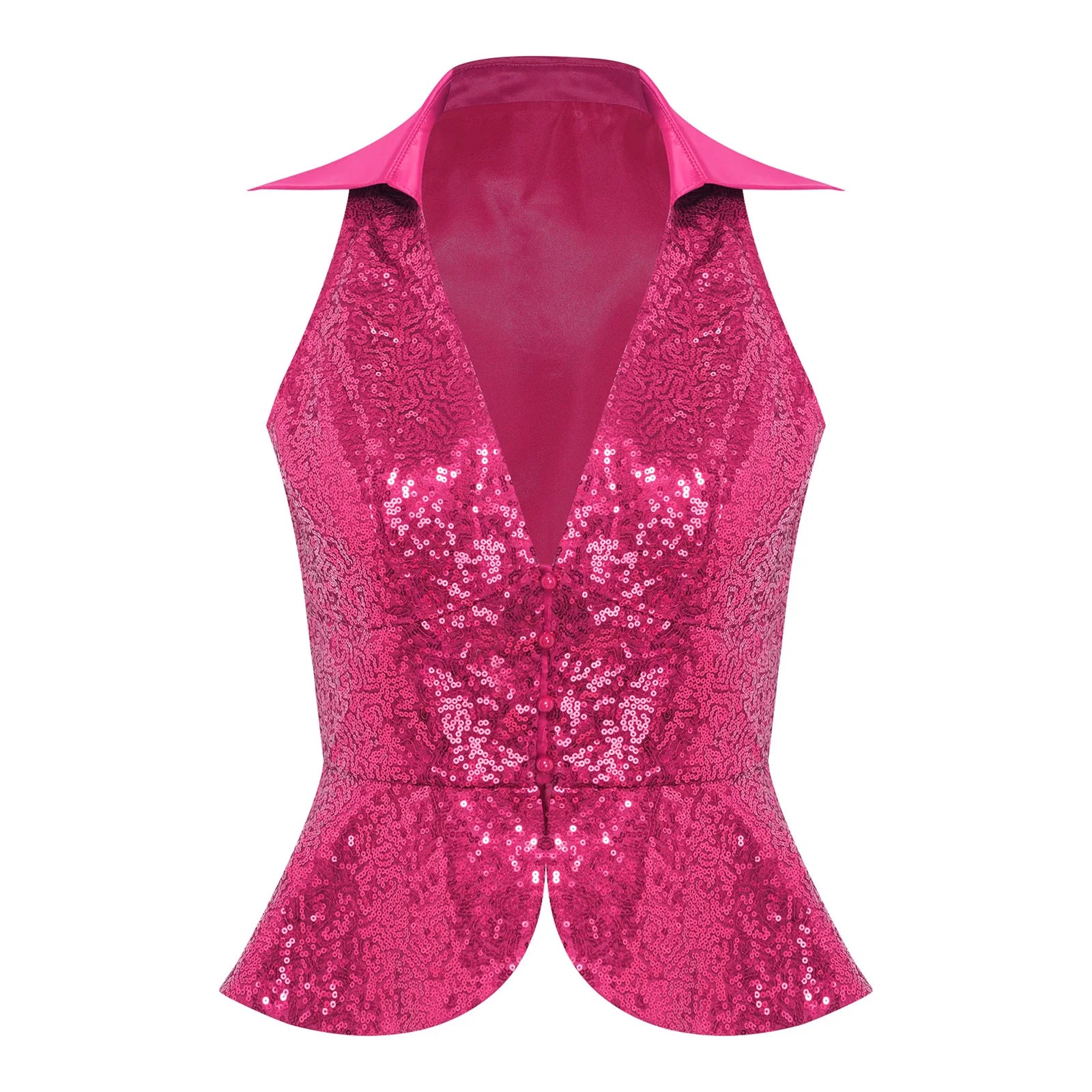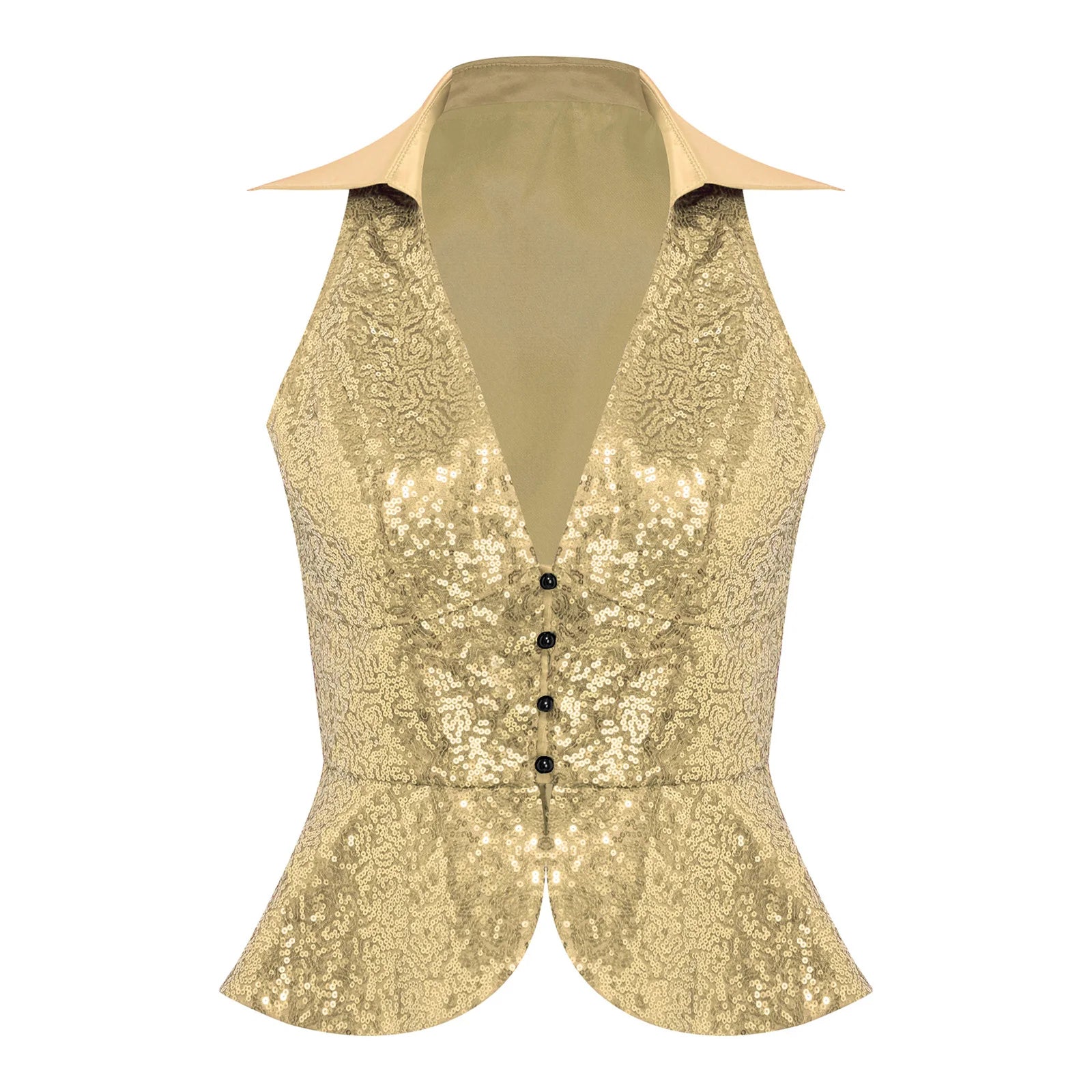 Sequins Vest Womens Fshion Sleeveless Vests Nightclub Bling Waistcoats Dressy Tops Rave Music Festival Party Sparkly Cosutme